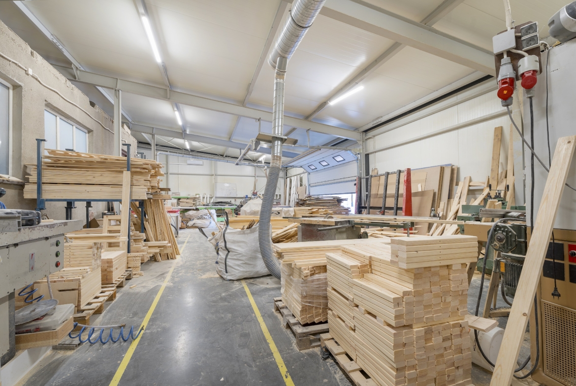 Obiekt idealny pod działalność produkcyjną, magazynową lub usługową – obecnie funkcjonuje jako warsztat stolarski z możliwością zakupu wraz z wyposażeniem.