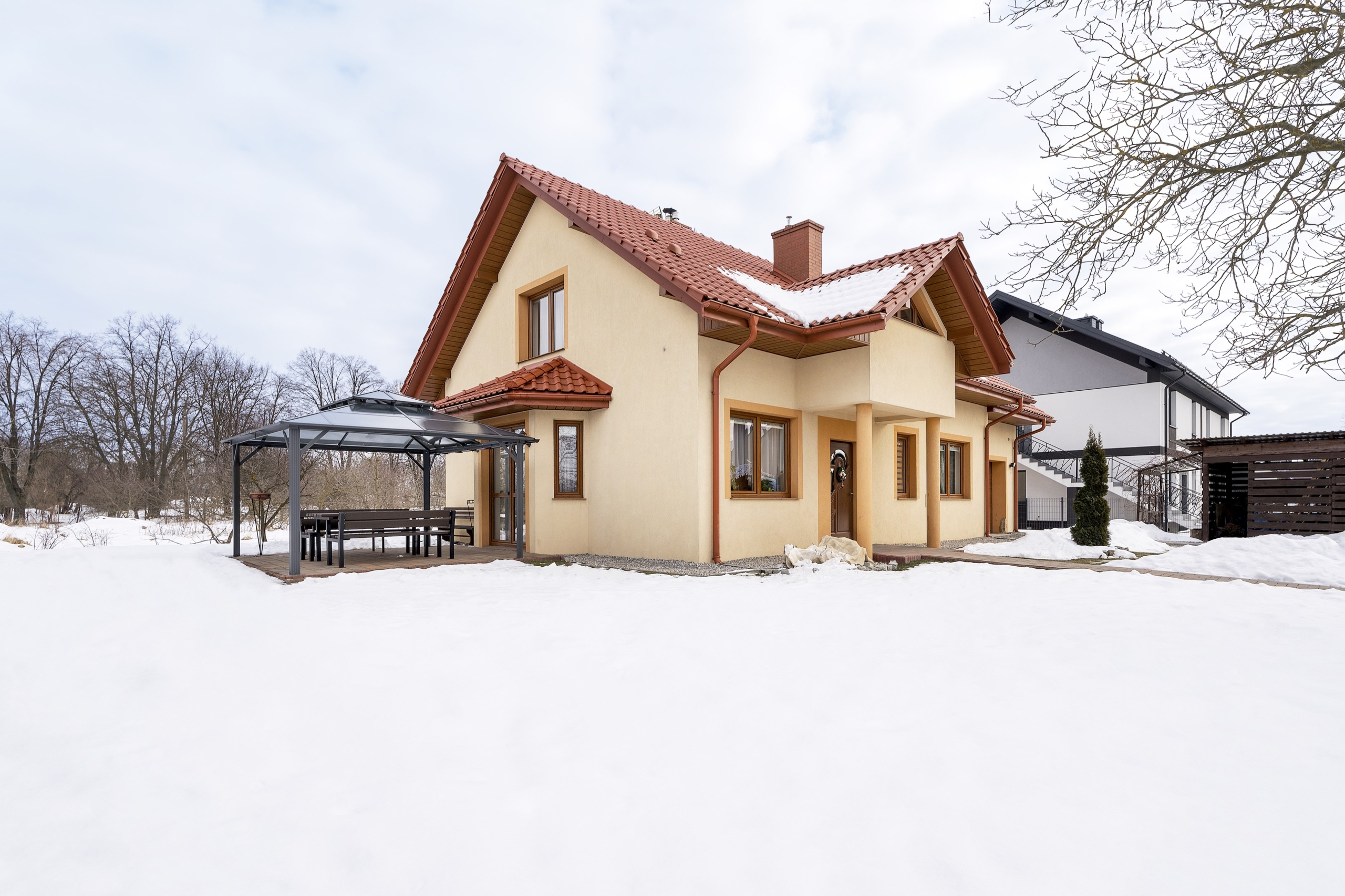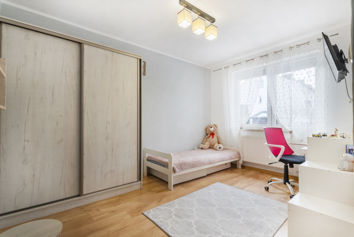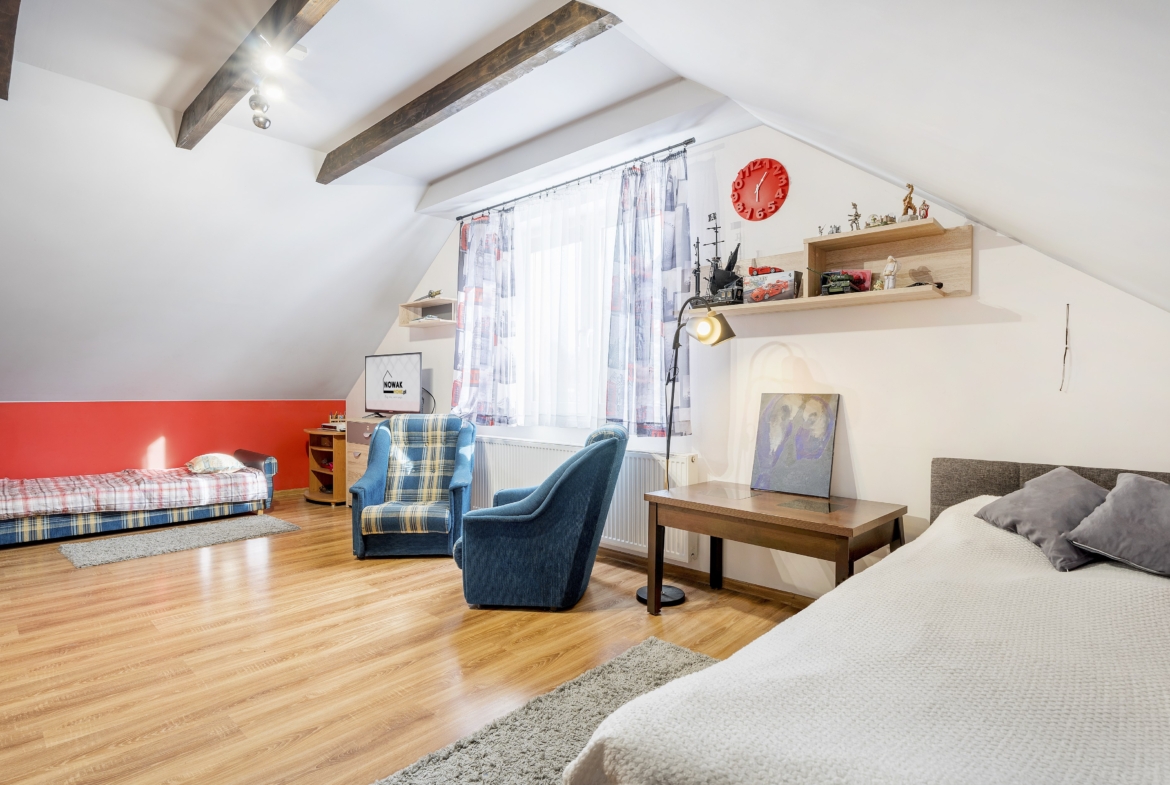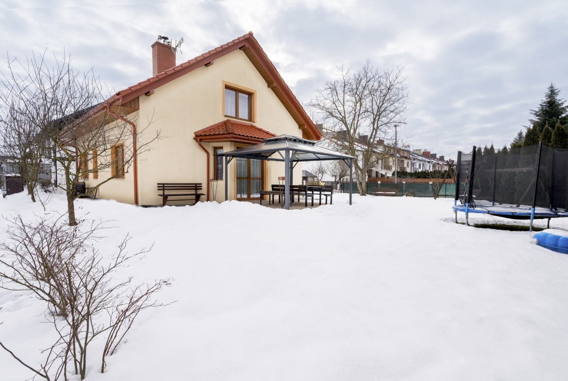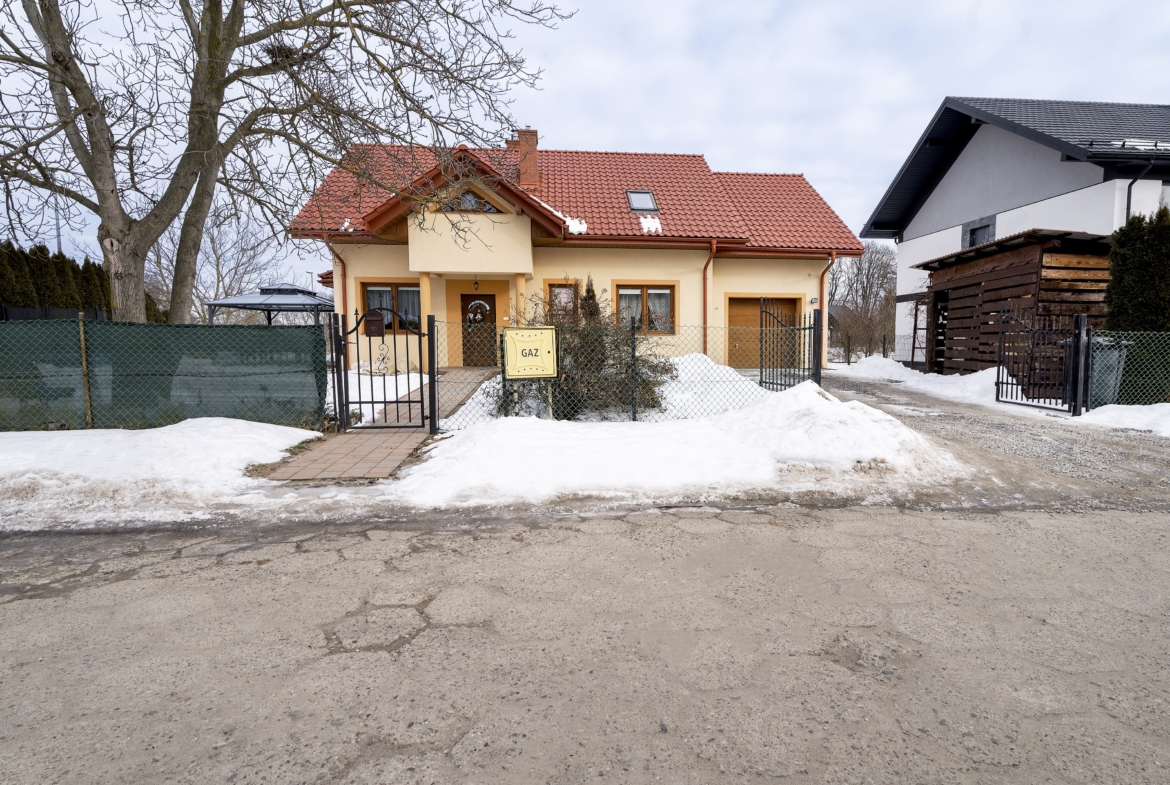 Dom o powierzchni użytkowej 116 m² został oddany do użytkowania w 2014 roku i sprzedawany jest z pełnym wyposażeniem. Ogrzewanie gazowe i kominek z płaszczem wodnym.