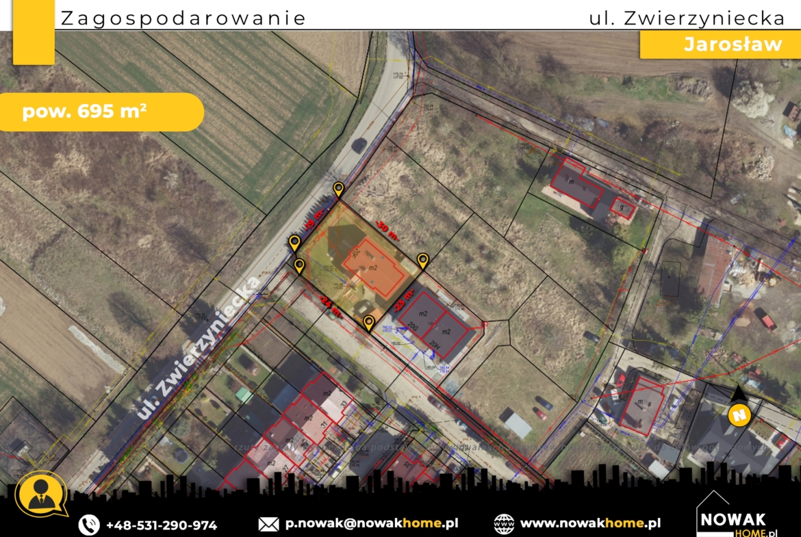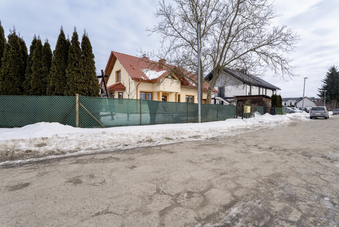 Spokojna okolica z zabudową jednorodzinną, szybki dojazd do centrum Jarosławia (ok. 3–5 minut).