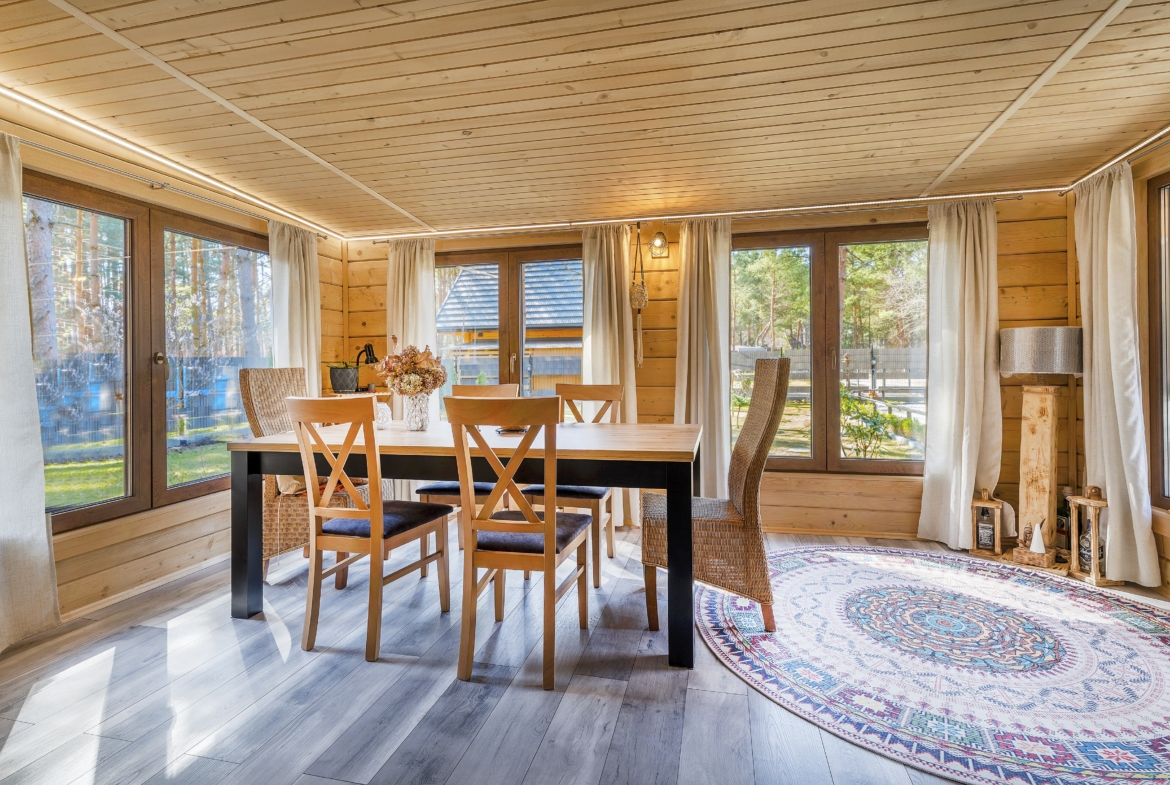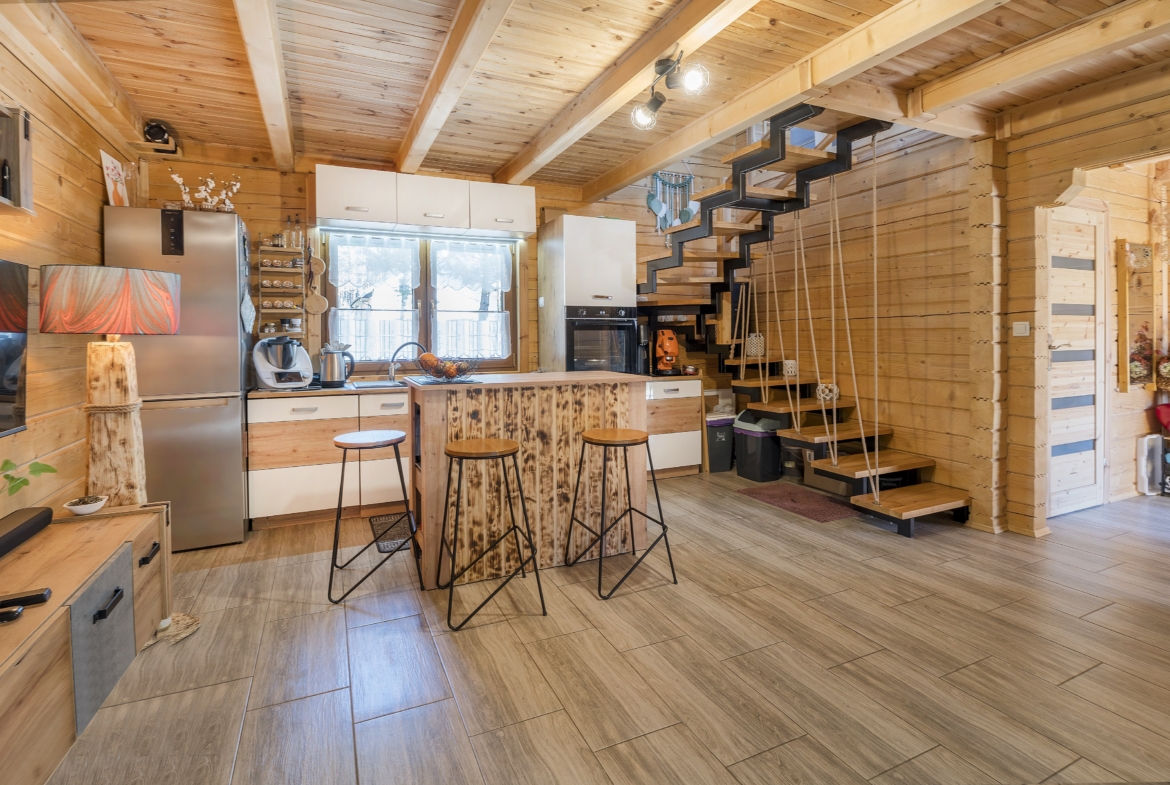 Właśnie taką nieruchomość oferujemy w Radawie – jednej z najchętniej wybieranych lokalizacji wypoczynkowych na Podkarpaciu. To nowoczesny dom z bala wybudowany w 2022 roku, który łączy naturalny klimat z funkcjonalnością i wygodą użytkowania przez cały rok. Nieruchomość wyróżnia się nie tylko klimatycznym wykończeniem i naturalnymi materiałami, ale również dużymi przeszkleniami oraz zabudowanym tarasem, który pozwala cieszyć się ogrodem i zielenią niezależnie od pogody.