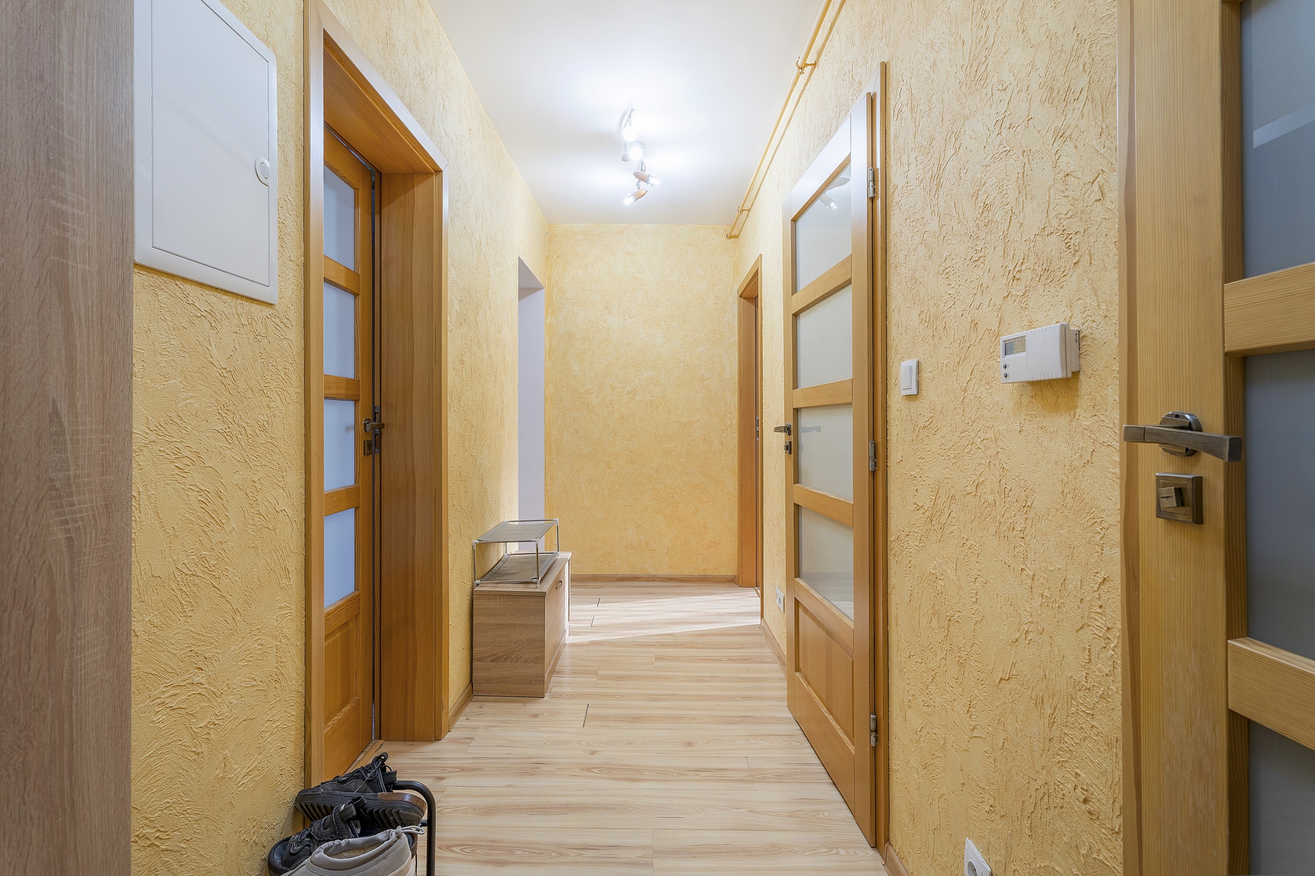 Jasne ściany oraz wykończenie podłóg sprawiają, że wnętrze jest dobrze doświetlone i przyjemne w codziennym użytkowaniu.