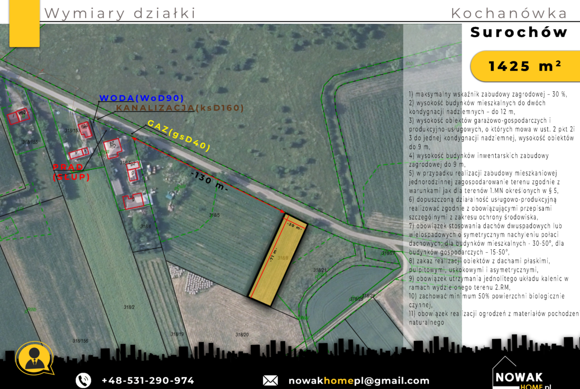 • Działka nie leży na terenach zagrożonych powodzią ani osuwiskami