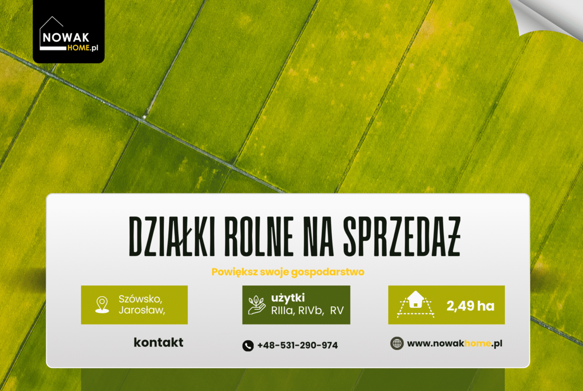 Sprzedam działki rolne o łącznej powierzchni 2,49 ha