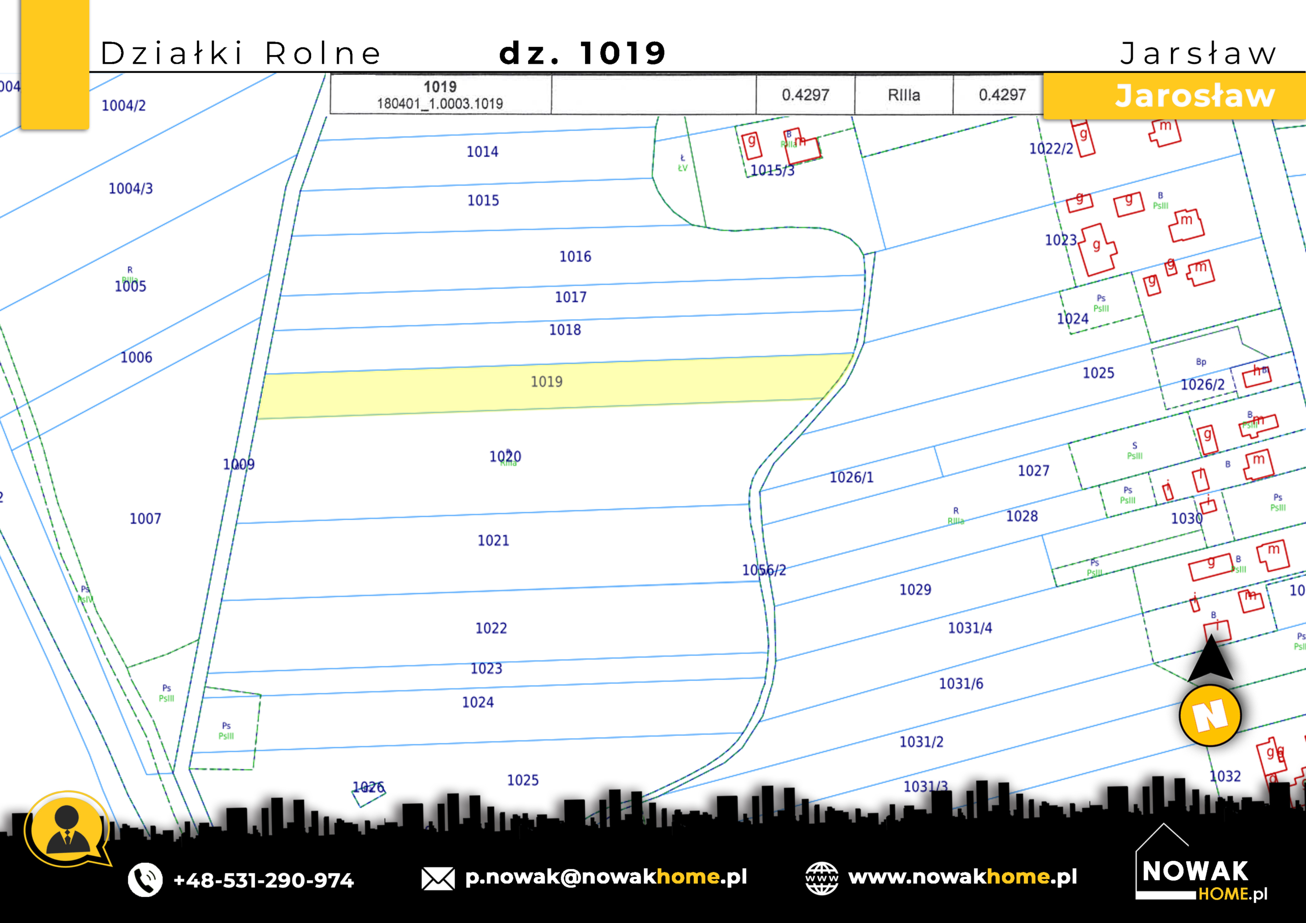 Działka numer 1019 obręb 3 Jarosław ID działki 180401_1.0003.1019 pow. 0,4297 ha