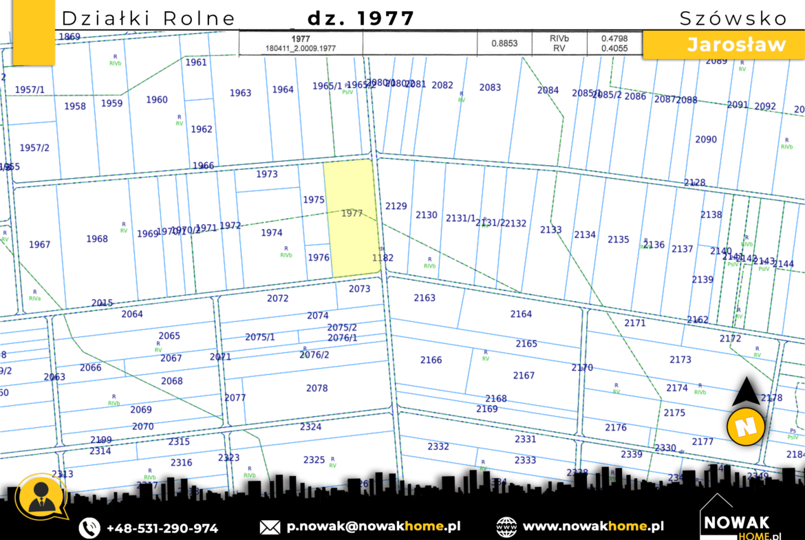 Działka numer 1977 obręb 9 Szówsko ID działki 180411_2.0009.1977 pow. 0,8853 ha