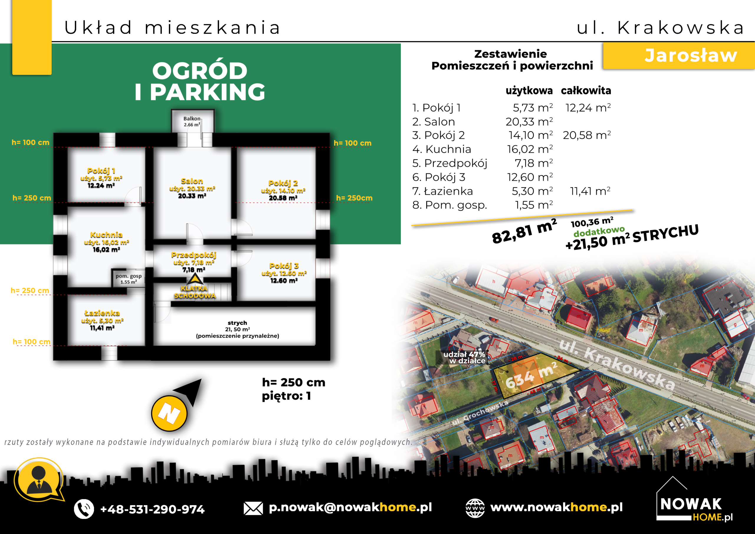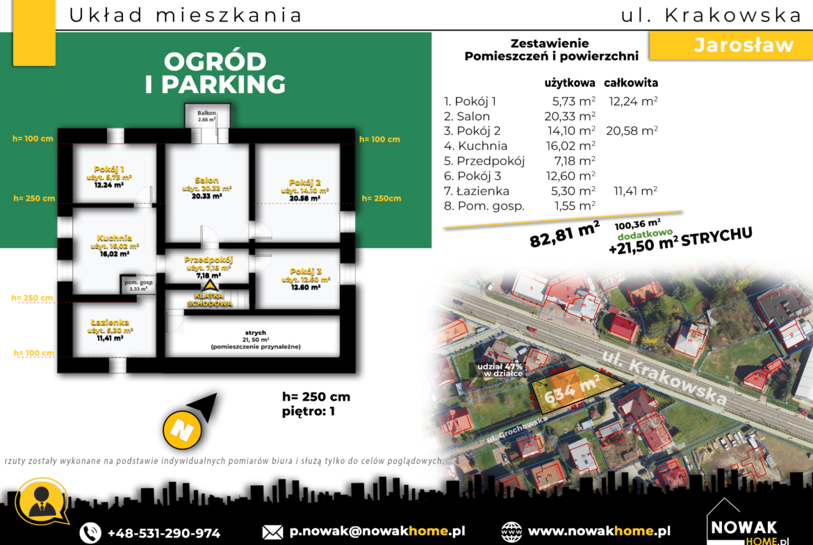 • Powierzchnia: 82,81 m² + 21,50 m2 pomieszczenia przynależne